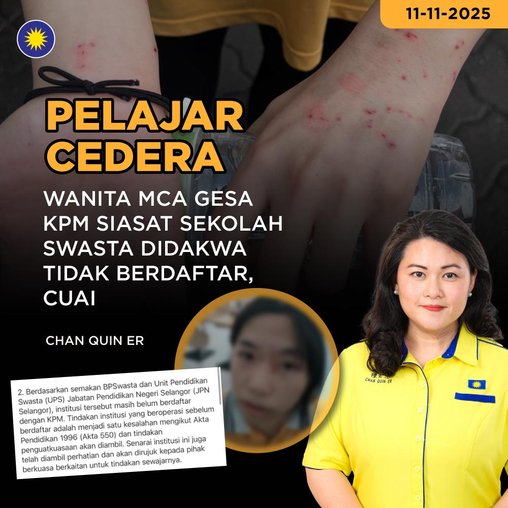 Pelajar cedera : Wanita MCA gesa KPM siasat sekolah swast...
